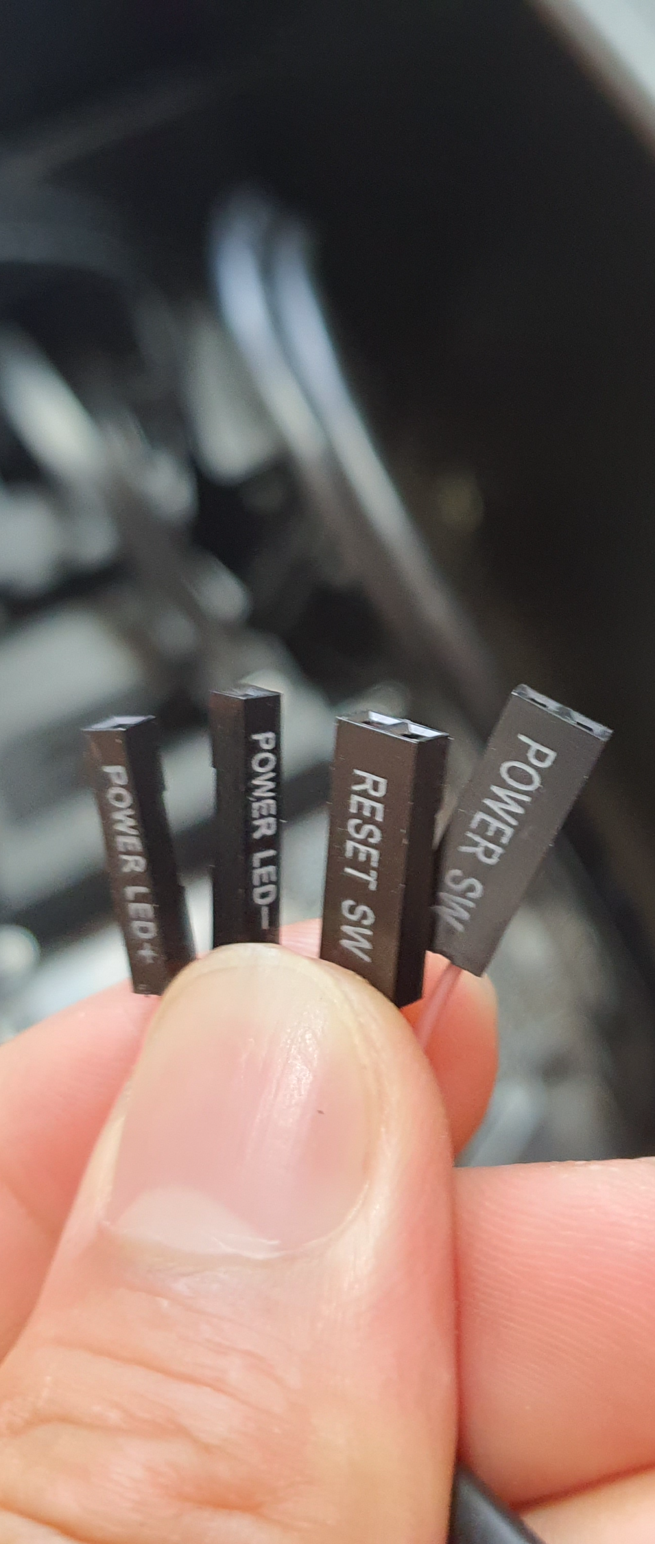 [POWER SW, POWER LED, RESET SW] 단자는 영어가 보이지 않게 뒤집어 꼽아줬어요.