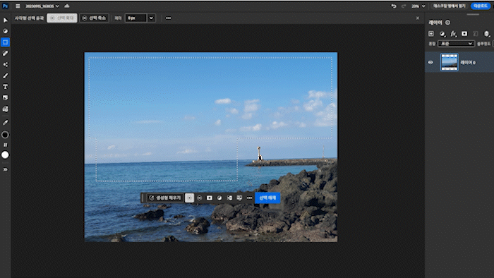 제가 직접 찍은 바닷가 사진을 업로드하고, 어도비 생성형 ai을 사용해 봤어요.