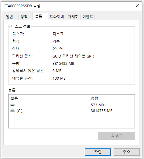 SSD 설치해서, 4TB를 온전하게 하나의 드라이브로 사용하고 싶었어요.