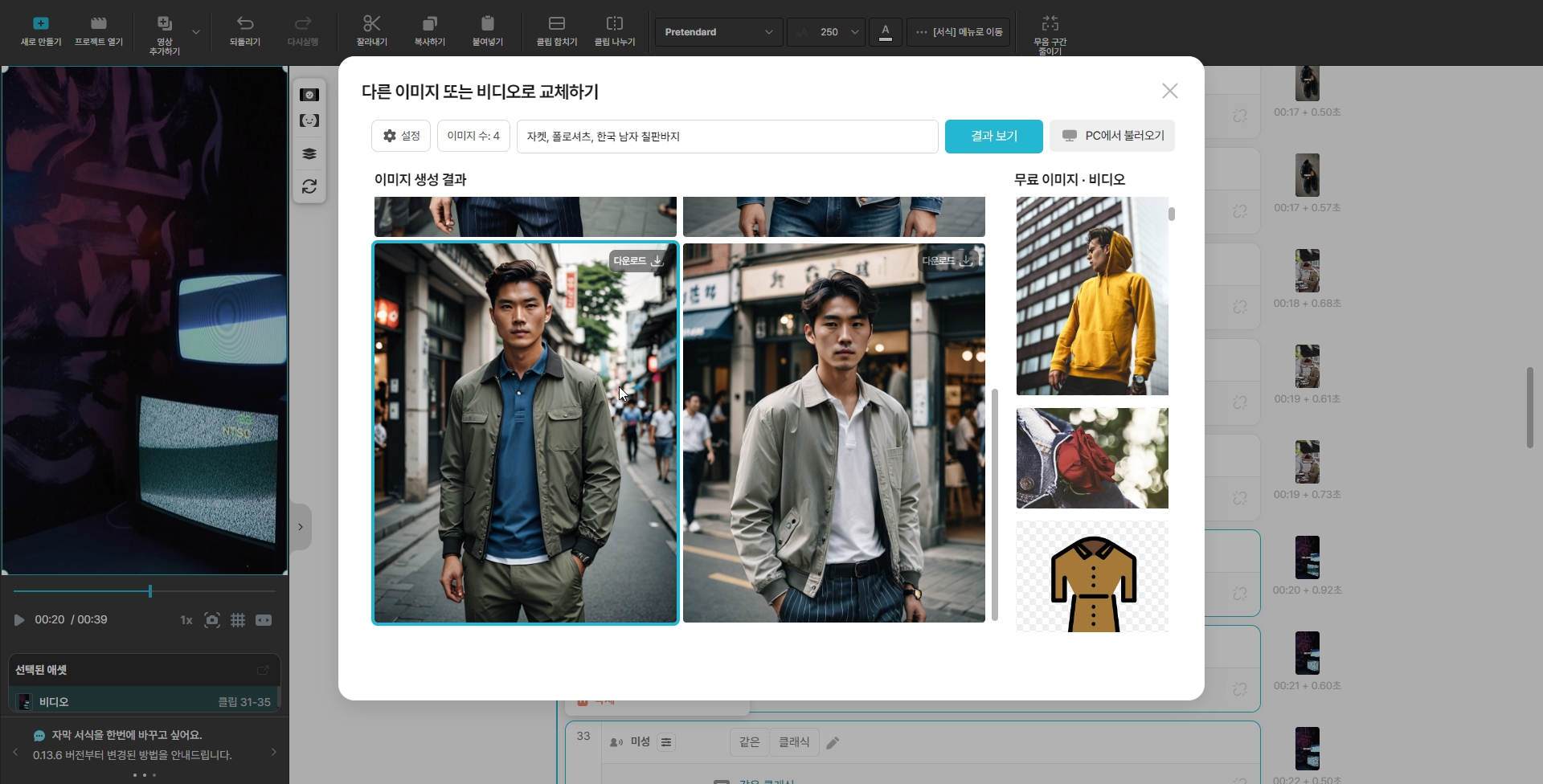 위 이미지는 [자켓, 폴로셔츠, 한국 남자 칠판바지]라고 작성한 후 ai이미지를 생성하는 모습입니다.