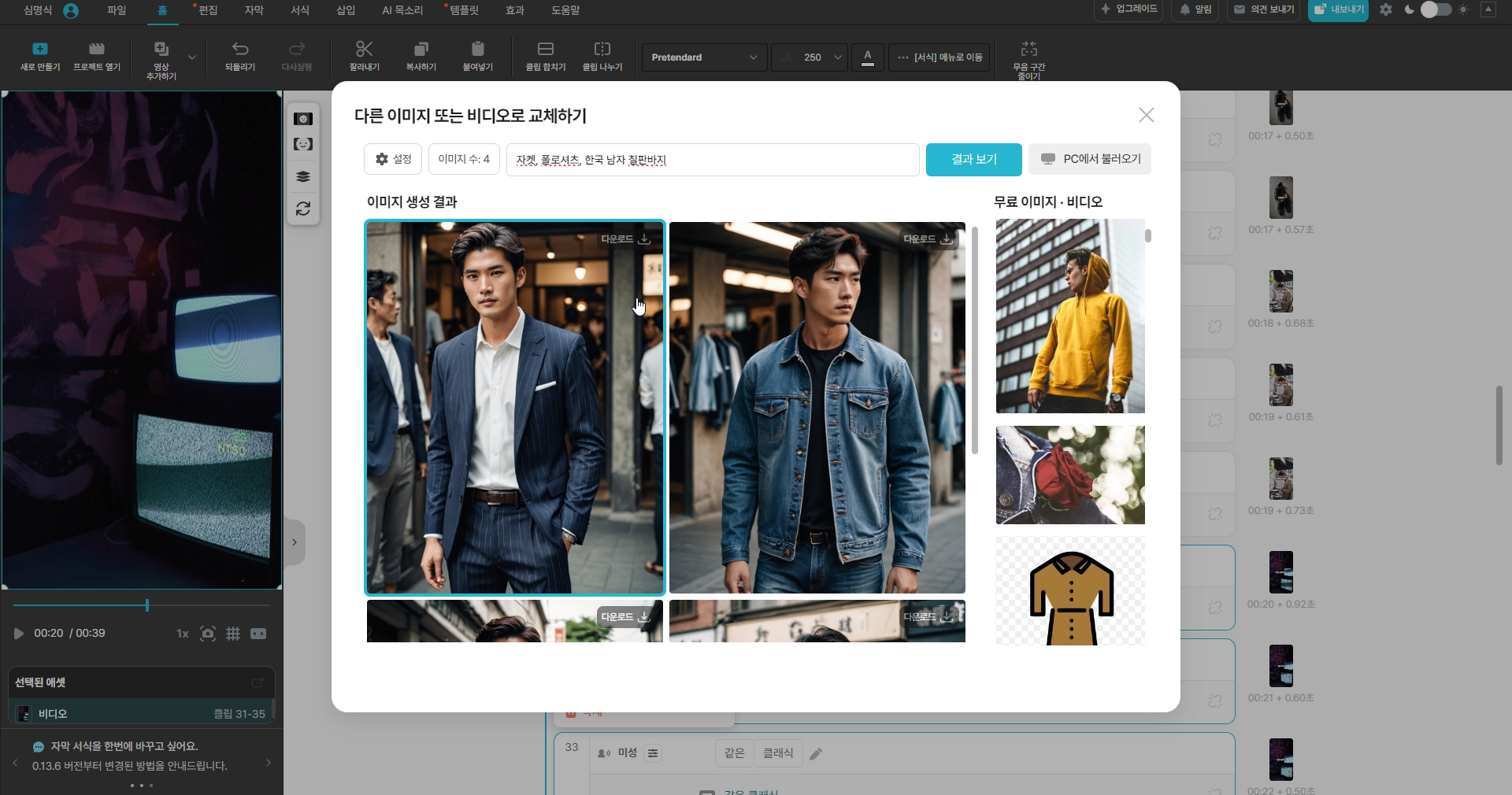 즉 글(시나리오, 대본, 텍스트)만 작업해서 넣으면, 이미지(&영상)를 넣어서 영상을 만들어줘요.