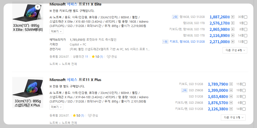 2024 서피스프로 Elite 1TB + 키보드 + 슬림펜 세트 , 가격 시세 정보는 아래 링크를 확인해주세요.