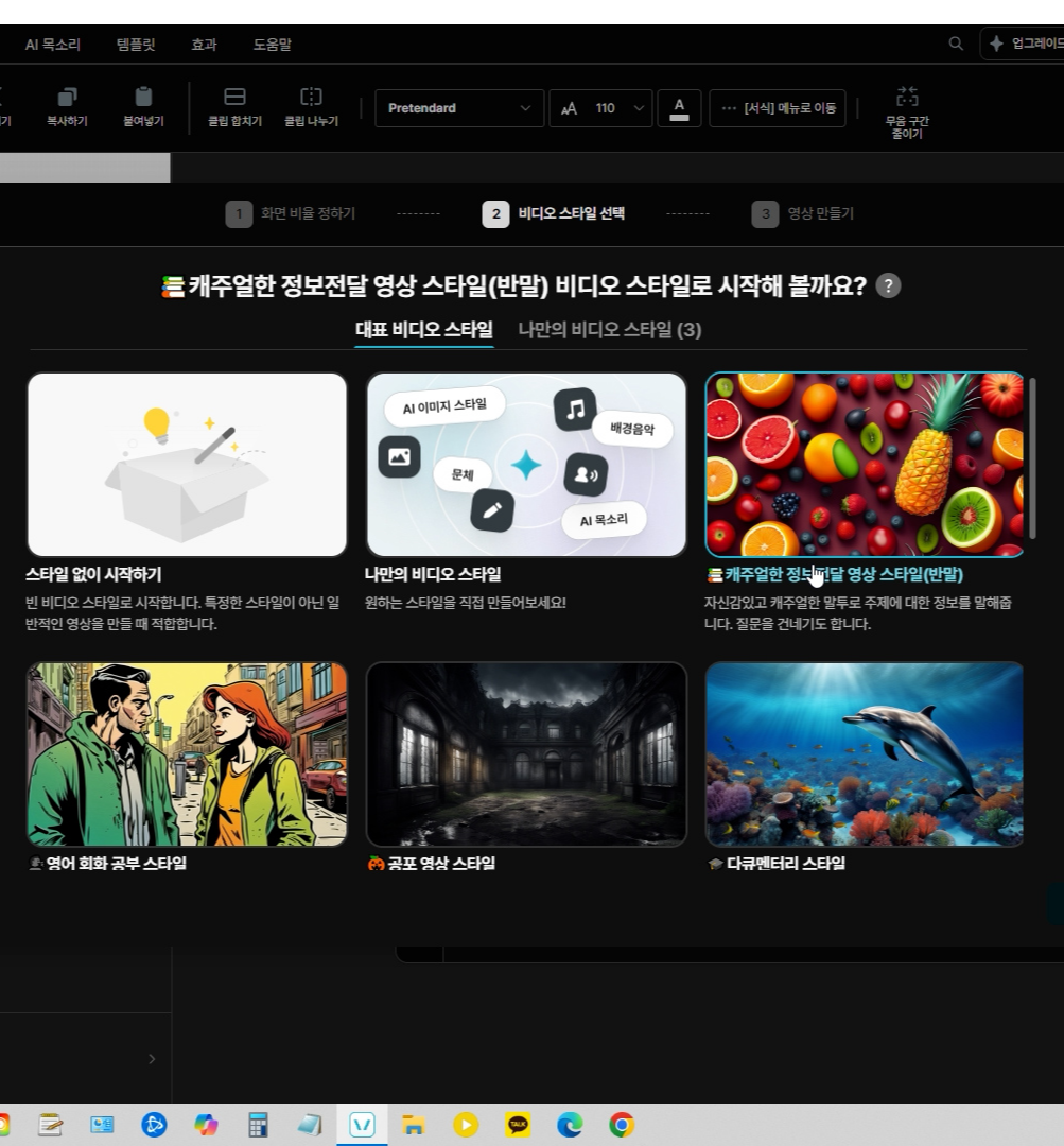 영상 스타일은 '캐주얼한 정보전달 영상'으로 선택했어요.