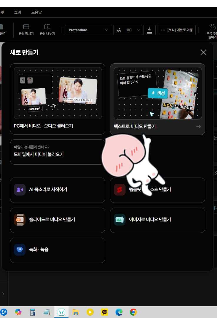 '텍스트로 비디오 만들기'를 눌러 줍니다.