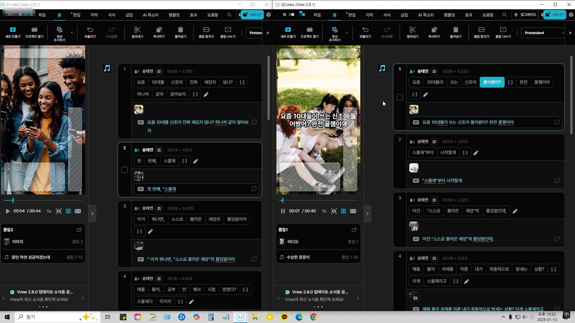 브루(VREW) 프로젝트는 여러 개 동시에 실행이 가능해요.