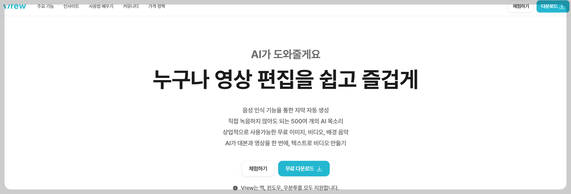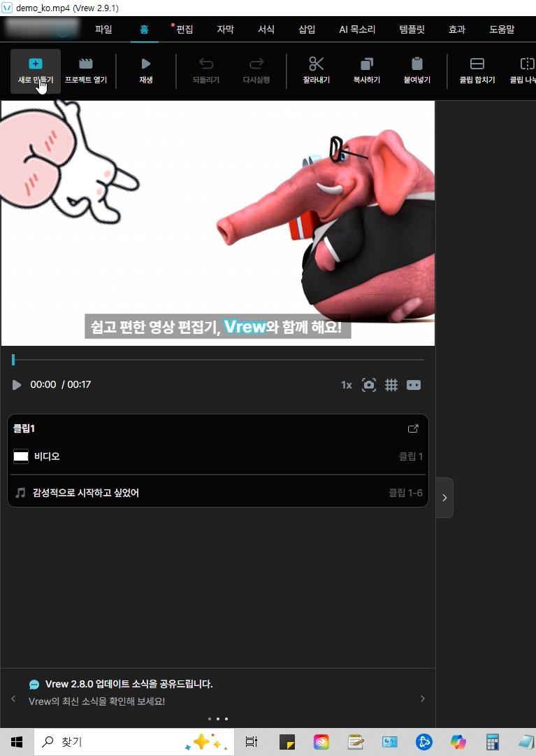 vrew(브루)를 실행합니다.