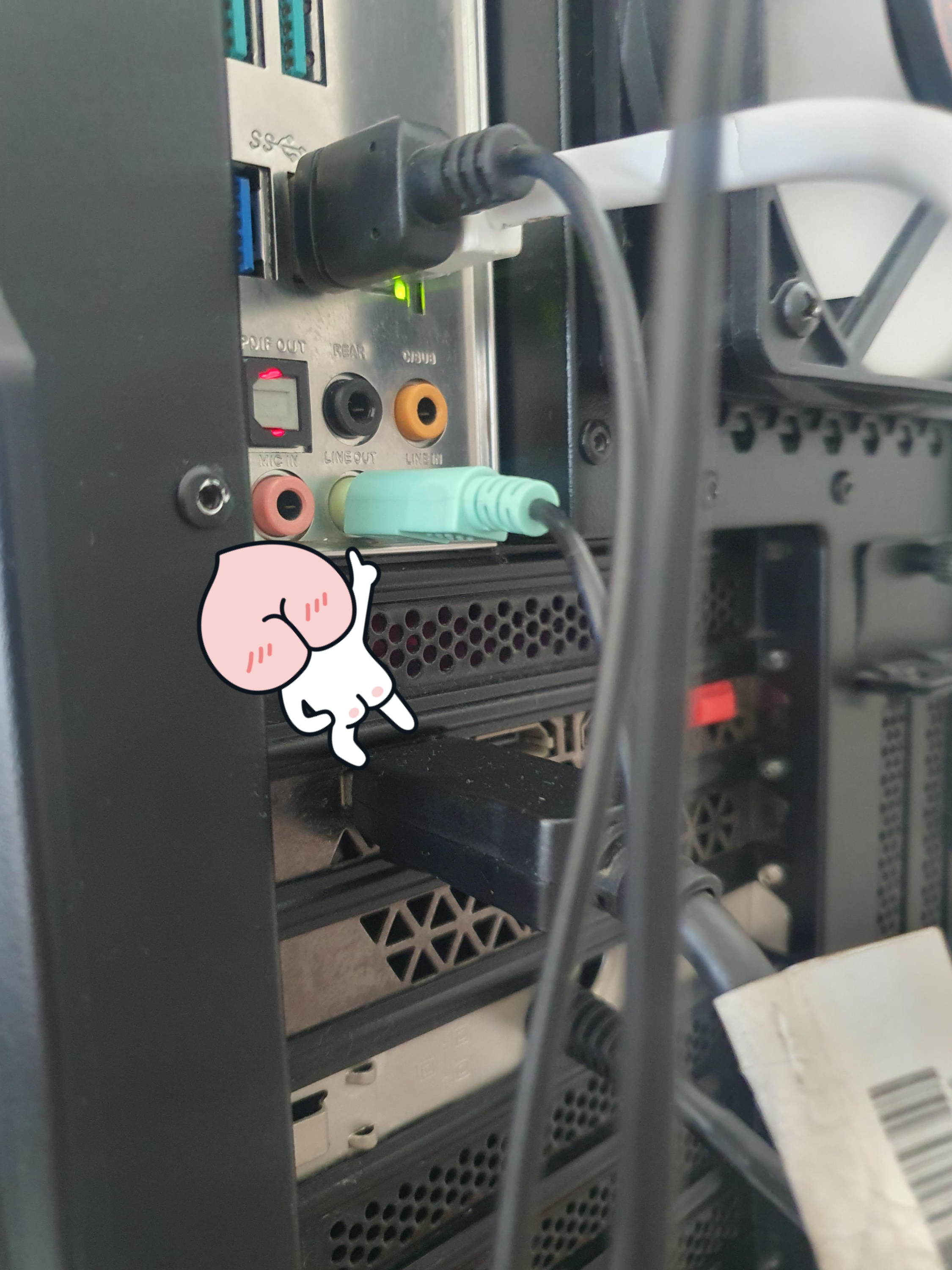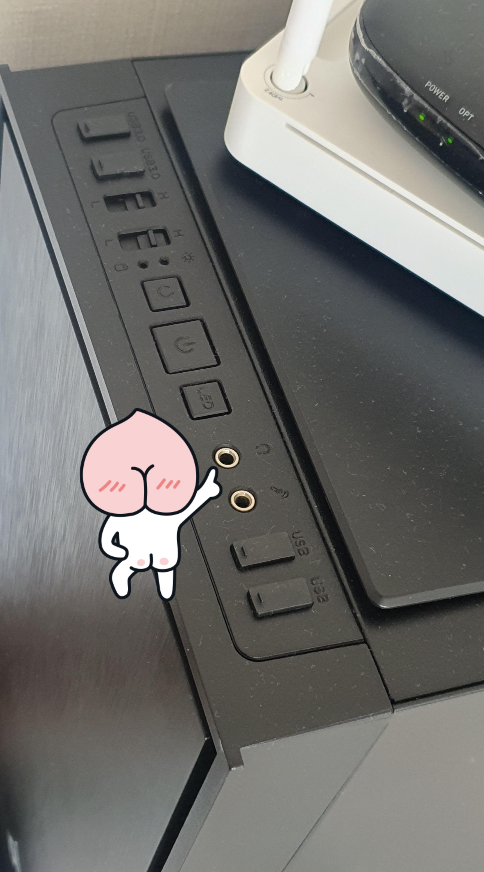 반면, 컴퓨커 본체 전면 '3.5mm 스테레오잭' 단자에 연결하면 연결하면, 스피커가 정상적으로 작동했어요.