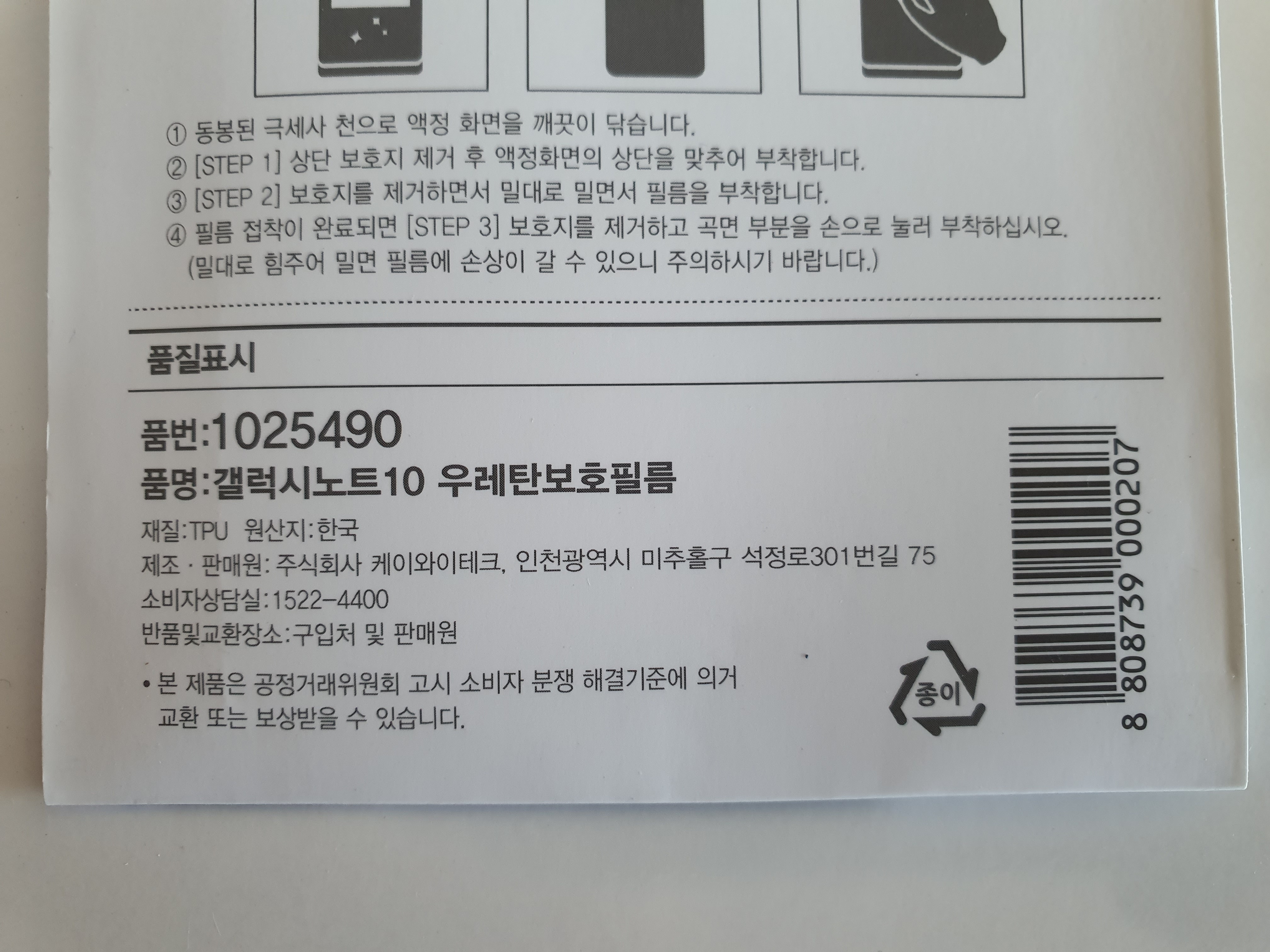 품명: 갤러시노트10 우레탄 보호필름
