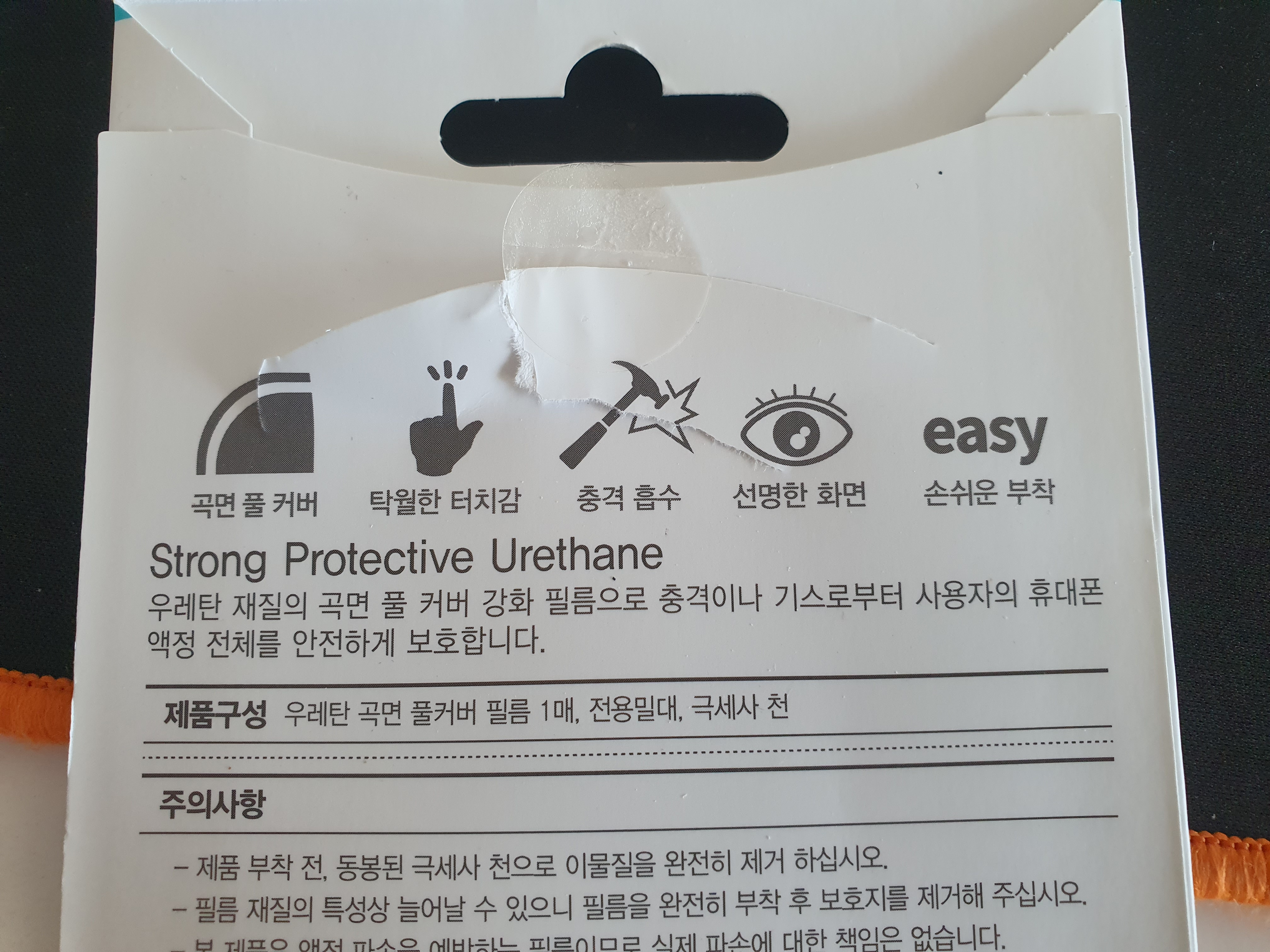 액정 곡면 풀 커버. 탁월한 터치감. 충격 흡수. 선명한 화면. 손쉬운 부착,