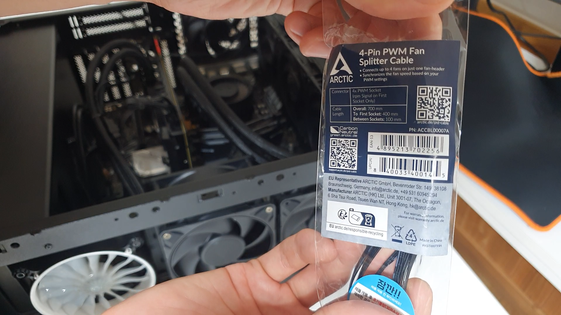 그리고 이번에 설치한 아틱 p12 pro 쿨링팬 3개의 전원 연결을 위해서 4핀 스플리터 케이블(Y형 케이블)을 구매했어요.