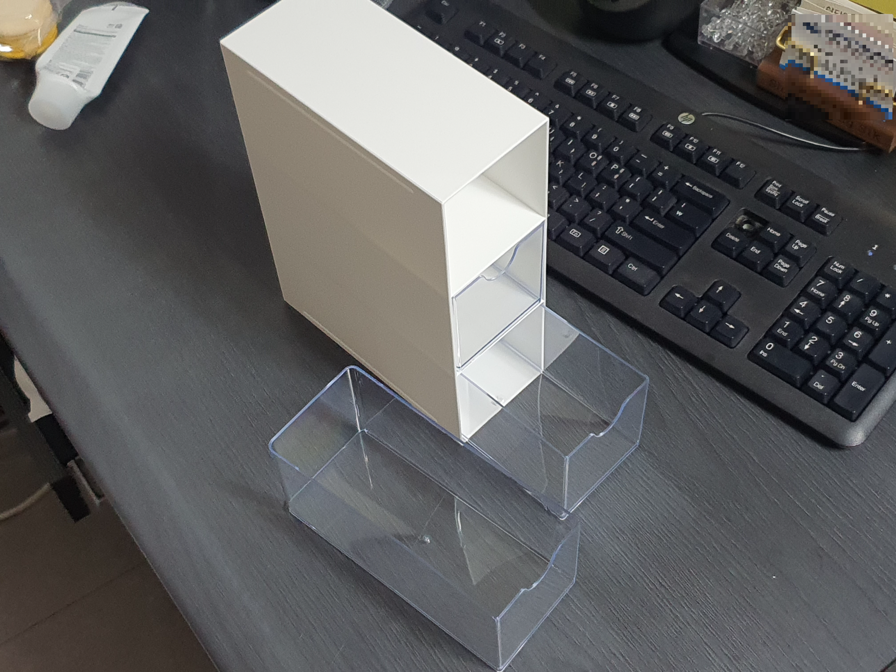 저 서랍 부품이 칸안에 딱맞게 들어가서, 안쪽에 공기가 압축되어서 잘 안들어가질 우려가 있어보였습니다.