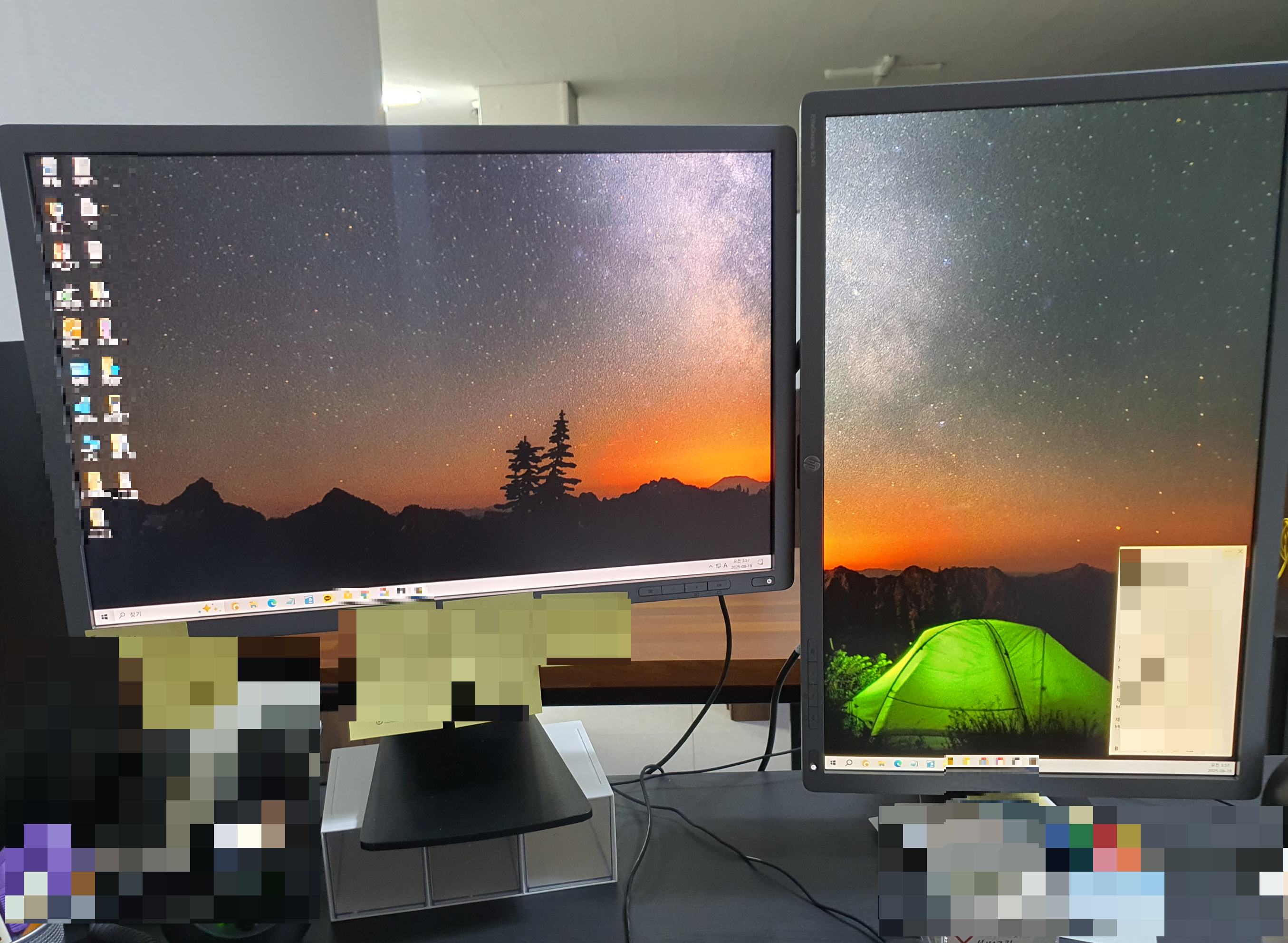 세로형과 가로형 모니터의 높이가 비교적 맞춰진 모습입니다.