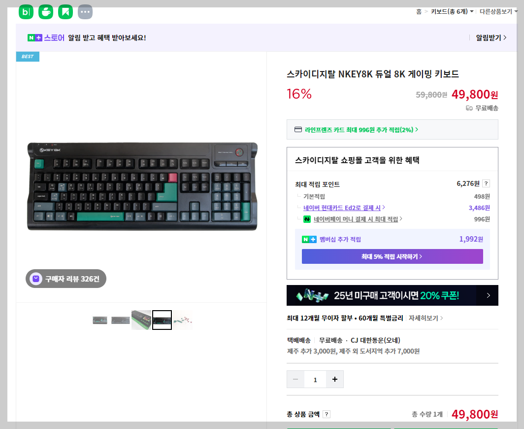 판매중인 n키보드 8k 모델을 판매하고 있네요.