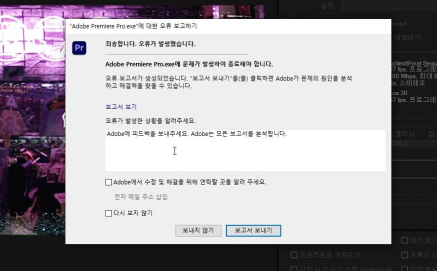 다양한 강제 종료의 원인이 있을 수 있습니다.
